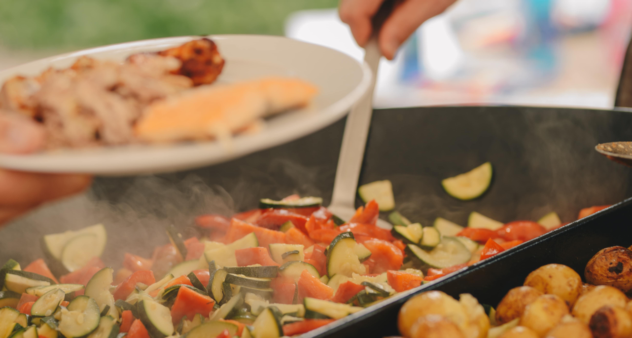 Two hot dishes and two sweets is between £15 to £19 per head depending on your choices and numbers.